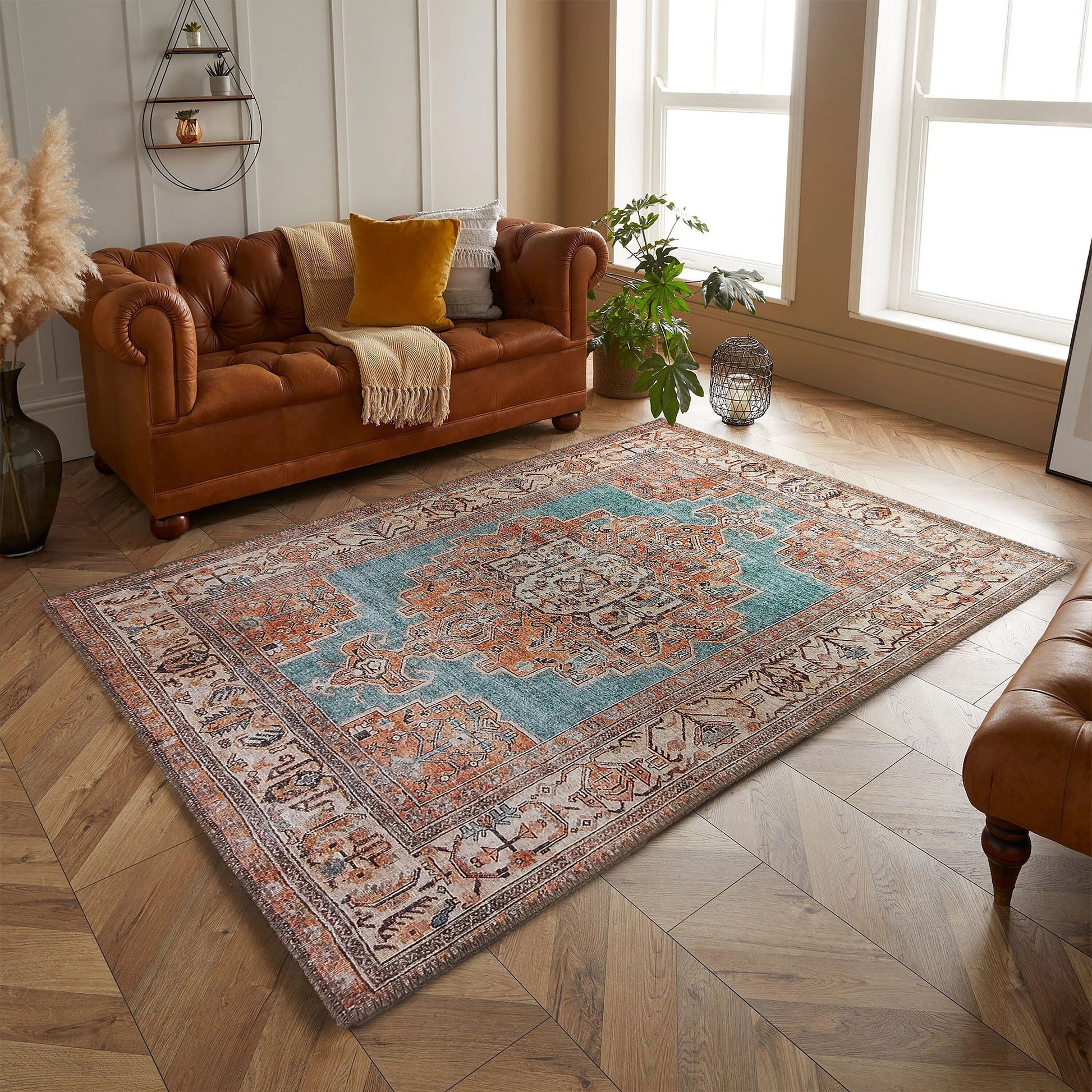 Dank seiner robusten Struktur und seines zeitlosen Vintage-Stils passt dieser Teppich perfekt zu modernen und klassischen Einrichtungen.