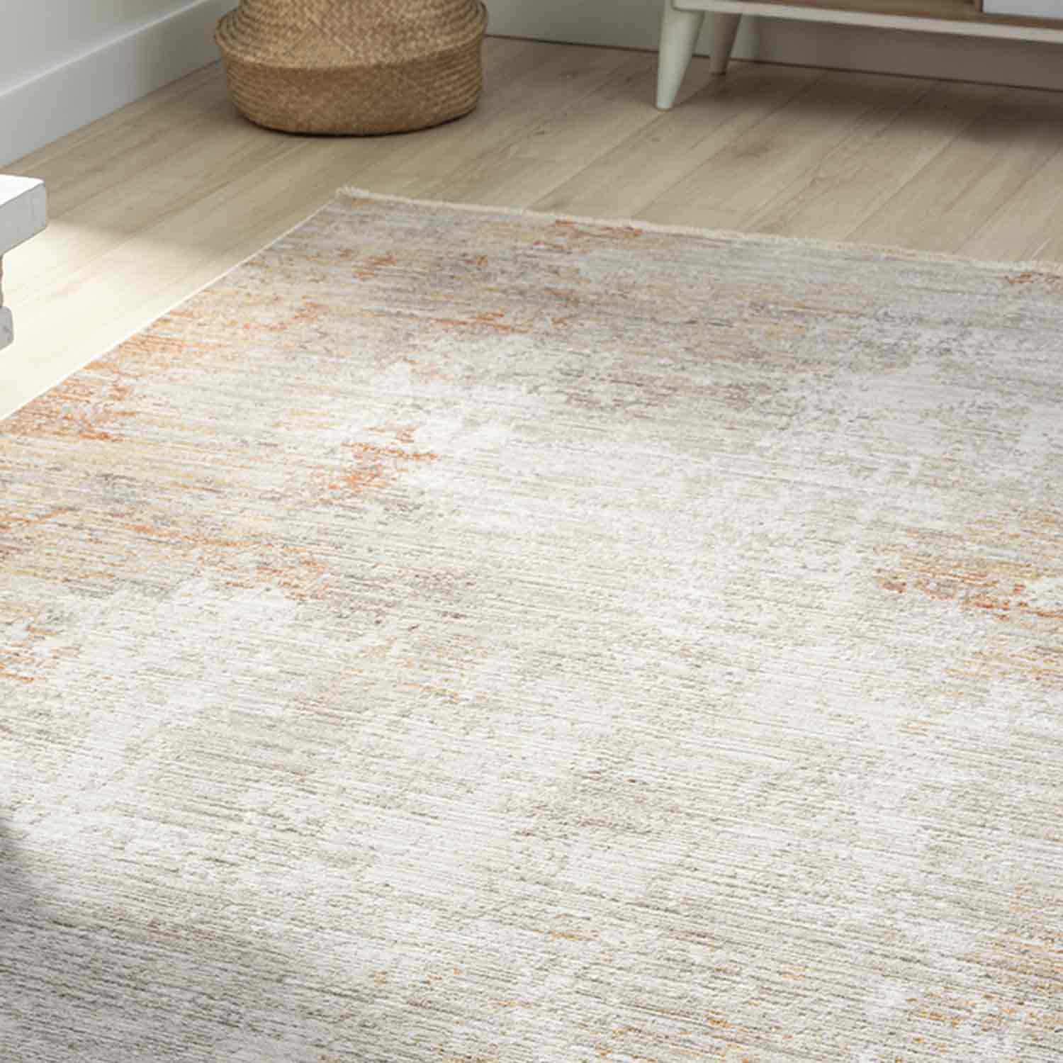 Gri Turuncu Kahve Eskitme Desenli Halı