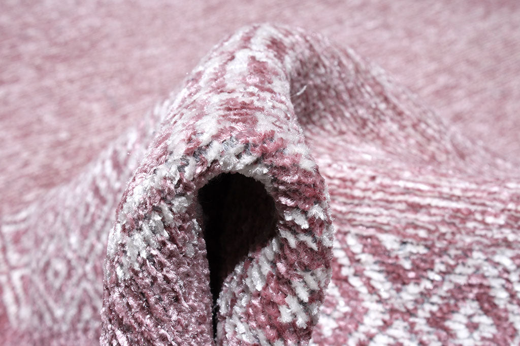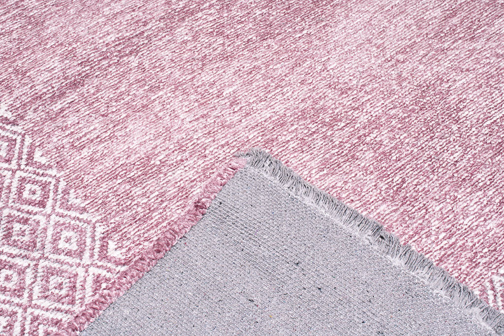 Pembe renkteki bu halı, Pamuk ve Polyester malzemeden Makine Dokuma tekniğiyle üretilmiştir. Modern bir tarza sahip olan halı, Dikdörtgen ve Yolluk şeklinde mevcuttur. 5–7 mm hav yüksekliği ile konforlu bir dokunuş sunar. Yıkanabilir özelliği sayesinde kolay temizlik sağlar, baskı boyama olmadığı için renk vermez. Aynı zamanda antibakteriyel ve antialerjik özellikleriyle sağlıklı bir ortam sunar, koku yapmaz, hav ve tüy çıkarmaz. Salon, Oturma Odası, Yatak Odası, Çocuk Odası, Mutfak, Antre ve Yolluk gibi evin birçok farklı alanında kullanıma uygundur. Ürün, 2 yıl üretim ve işçilik hatalarına karşı garantilidir.