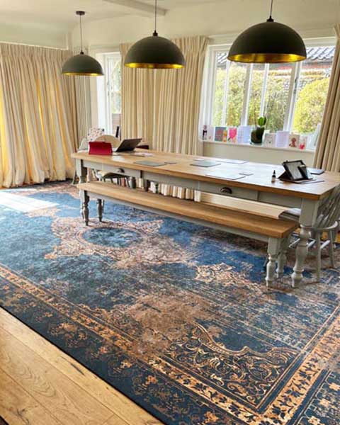 En büyük boyu tercih ettim. Gerçekten göz alıcı bir halı. Salonuma farklı bir karakter kattı. Renkler tam istediğim gibi, lacivert asil, altın zarif, kahve sıcaklık katıyor.