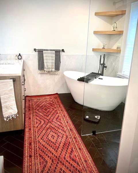 Banyom için Pera Halı tercih ettiğim için pişman olmadım. Kırmızı tonu enerjik bir hava veriyor. Banyomda hem şıklık hem de konfor kazandım.
