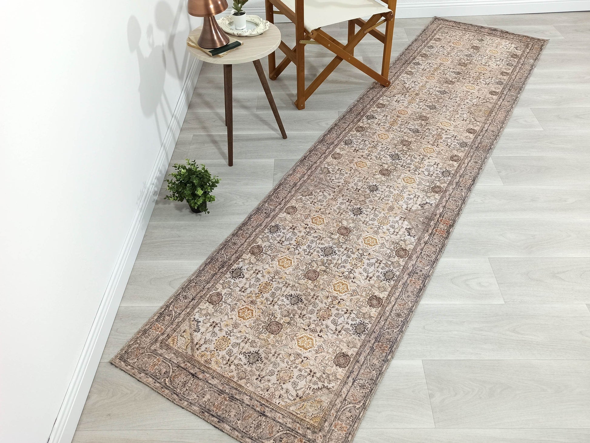 Bej ve Toprak Tonlu Çiçek Desenli Vintage Halı