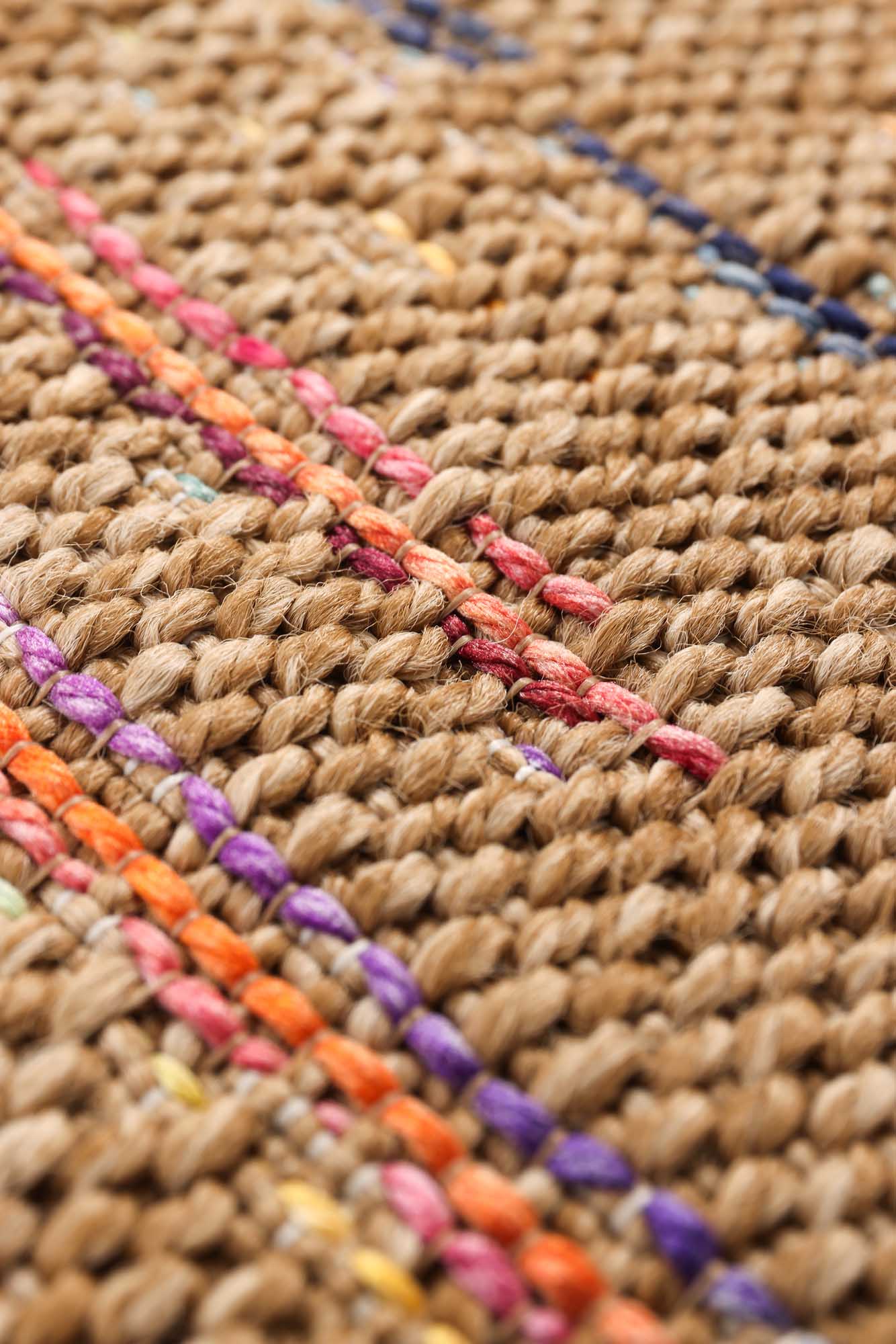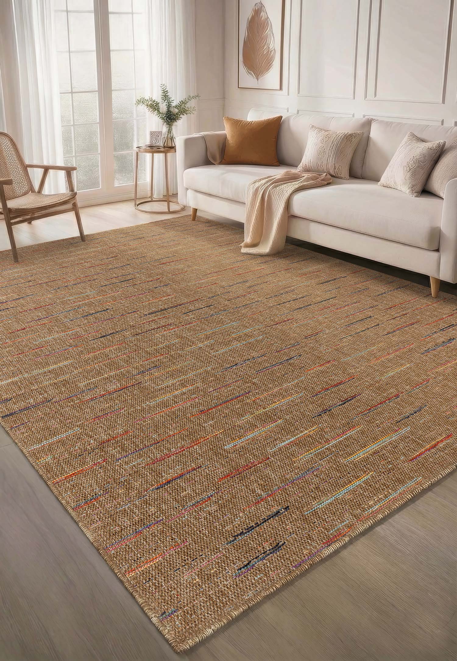 Geleneksel jüt halı estetiğini modern sanatın renkli dokunuşlarıyla birleştiren bu tasarım, belirgin sepet örgü yapısıyla zeminde zengin bir doku oluşturur. Aralara giren renkli iplik geçişleri, halıya "el yapımı" ve özgün bir karakter kazandırırken mobilyalarınızla olan renk uyumunu kolaylaştırır. Modern Boho, Eklektik, Japandi ve Neşeli Minimalizm tarzı dekorasyonlar için kusursuz ve fark yaratan bir zemin seçeneğidir.