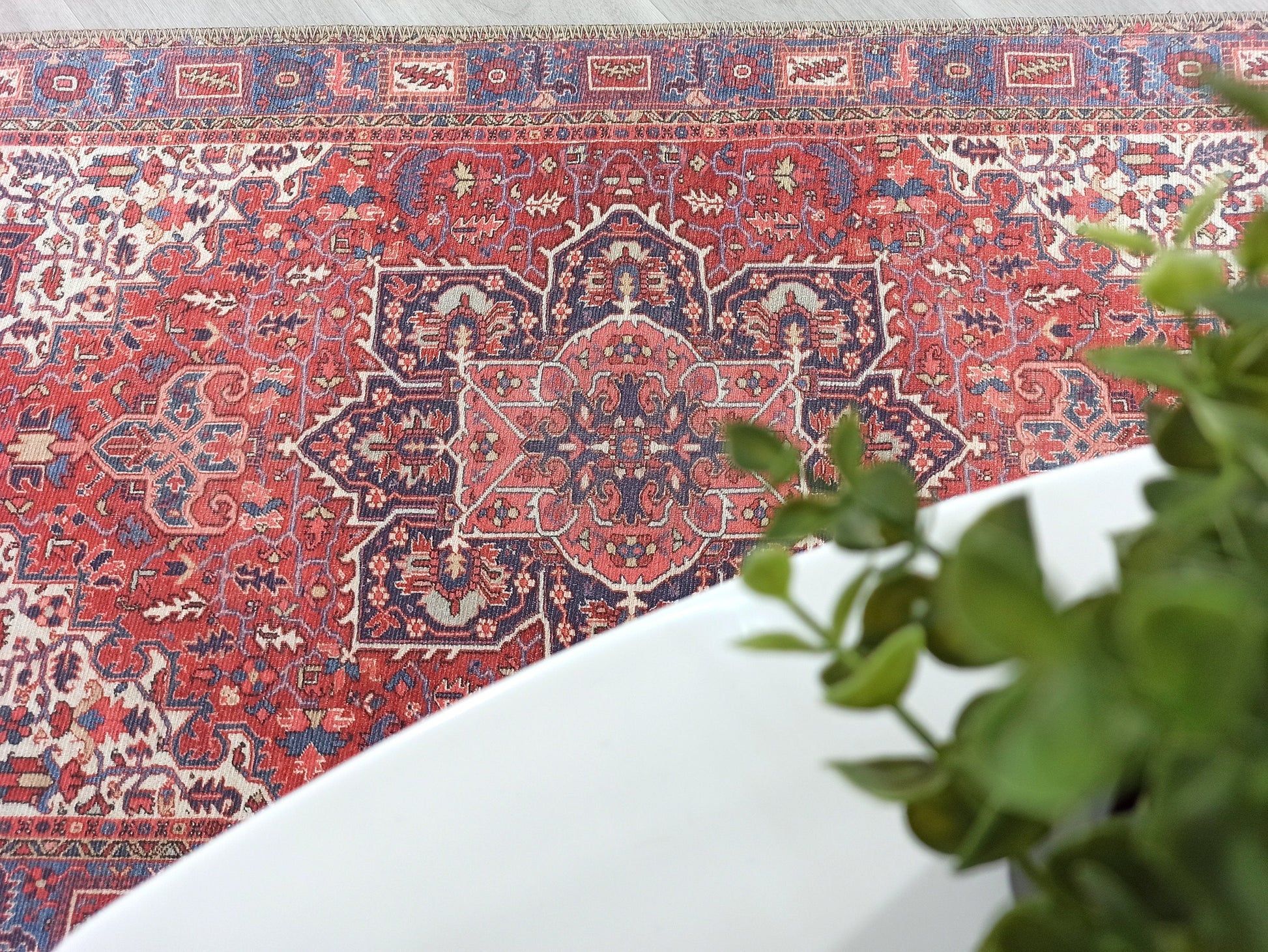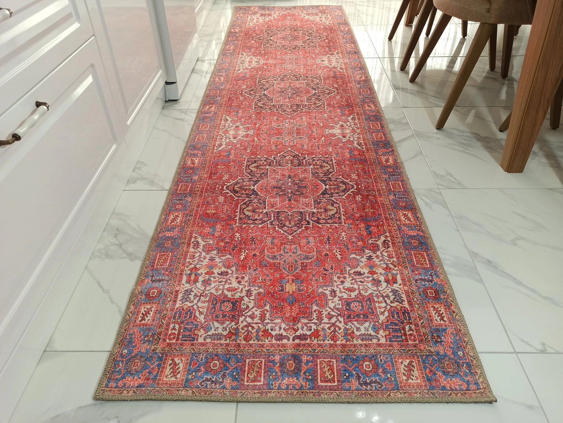 Hem dekoratif hem de fonksiyonel yapısıyla bu halı, modern evlere zamansız bir vintage şıklığı kazandırır.