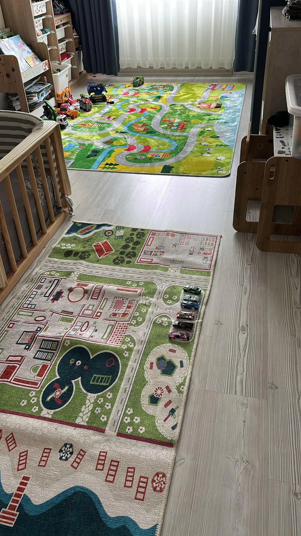 Hayal gücünü geliştiren, eğitici ve canlı desenler. Halı değil, aynı zamanda interaktif bir öğrenme ve oyun alanıdır.