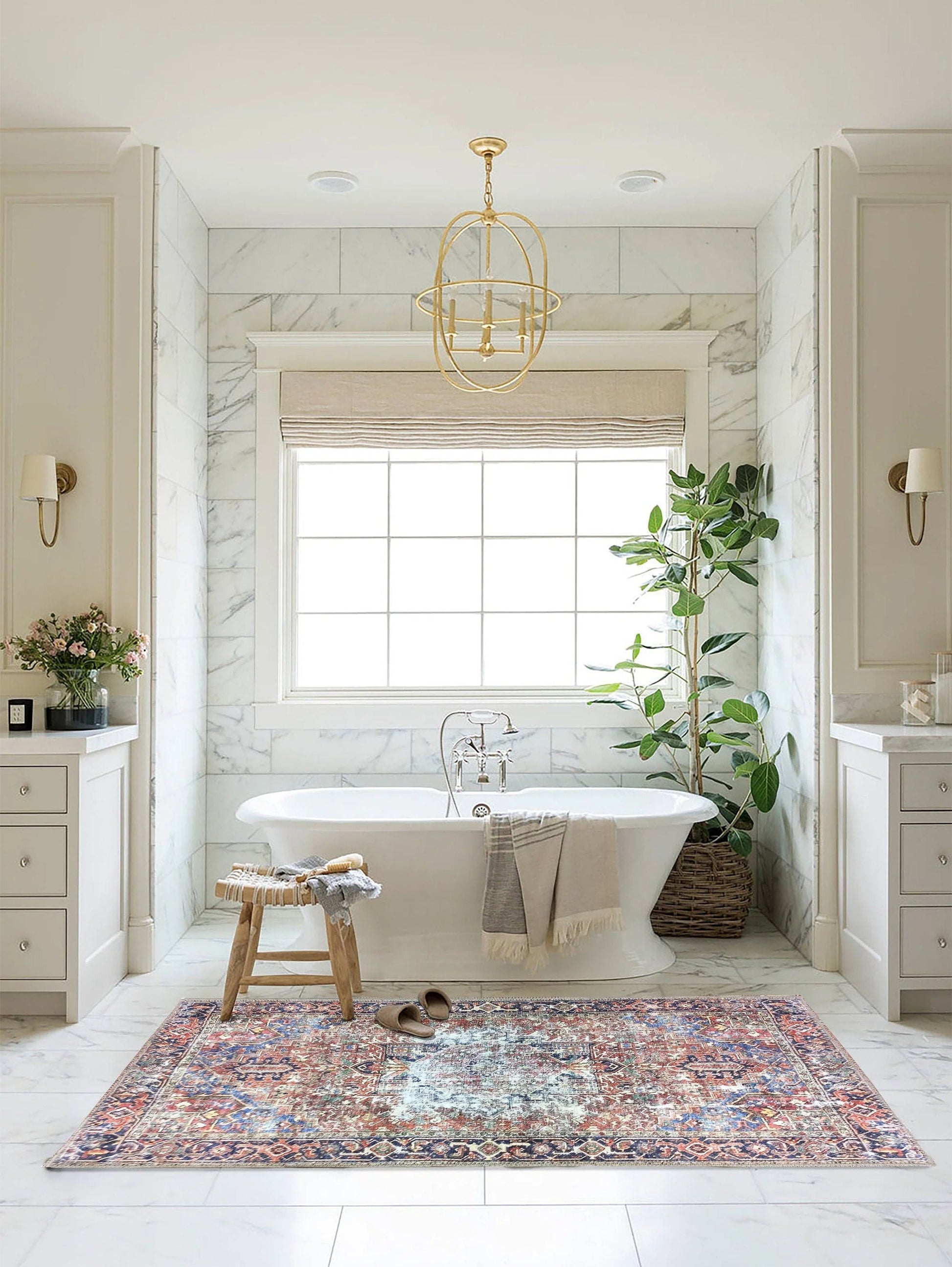 Hem dekoratif hem de fonksiyonel yapısıyla bu halı, modern evlere zamansız bir vintage şıklığı kazandırır.