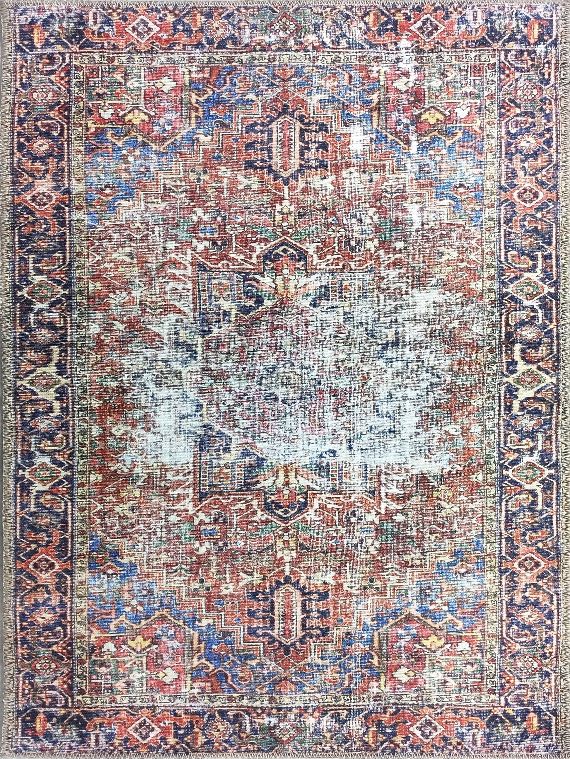 Evinize tarihin ve sıcaklığın dokusunu taşıyın. Zengin terracotta (kiremit/toprak) ve derin lacivert tonlarının hakim olduğu bu tasarım, klasik Pers medalyon desenlerinin "aşınmış" (worn-out) estetiğiyle yeniden yorumlanmasıdır.